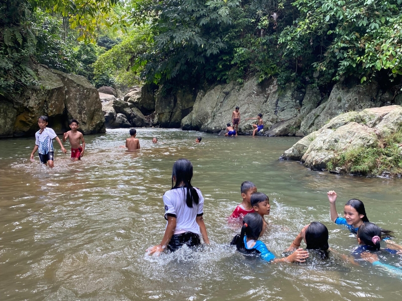 Anak-anak Ciseel sedang bermain di sungai.